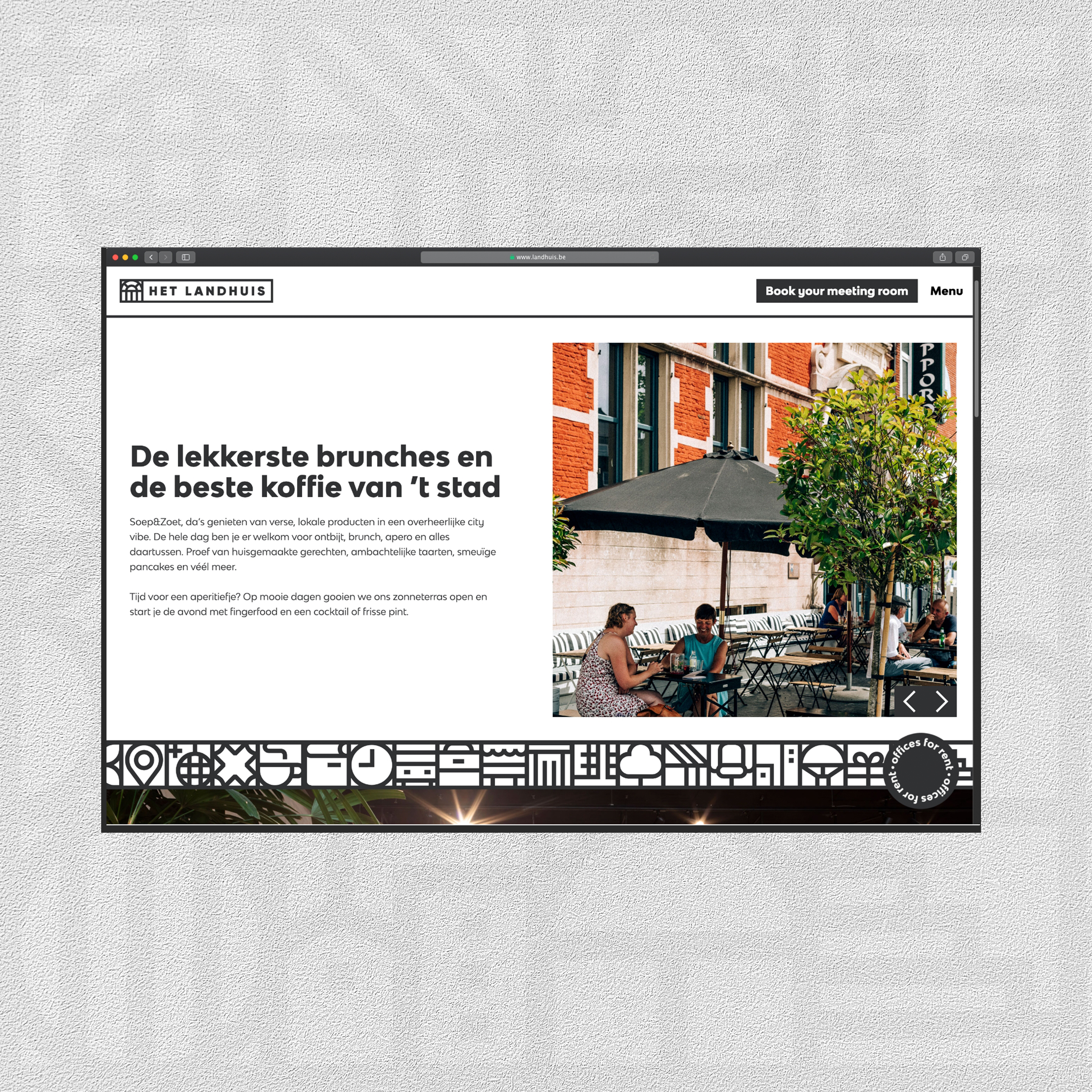 De eigenheid van het nieuwe Landhuis is echter heel bijzonder: Soep&Zoet nestelt zich op het gelijkvloers, dus hier wordt niet enkel gewerkt. Met heerlijk ontbijt, lekkere lunches en verfrissende drankjes op het terras is dit dé hotspot in het hart van Sint-Niklaas. Een allesomvattend concept van samen werken, netwerken, ontmoeten, feesten, genieten, eten en drinken.